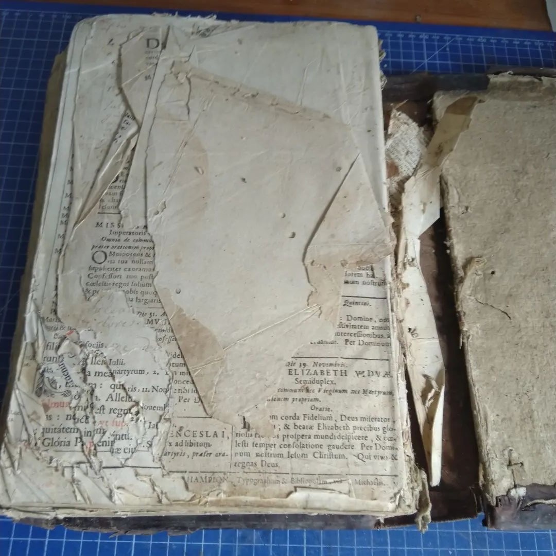 La règle générale de la restauration est de garder un maximum des matériaux d’origine sur le livre et ceci en respectant des principes de base :